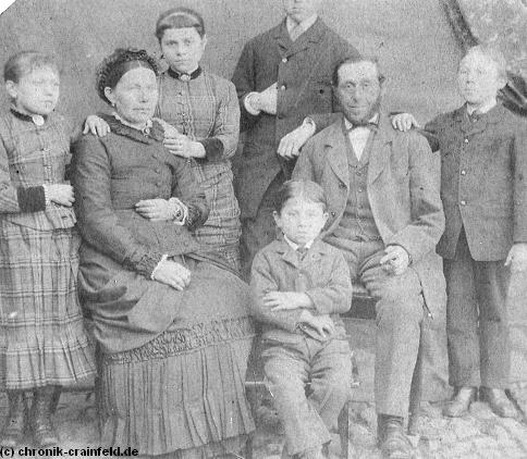 Die Familie Stein nach ihrer Auswanderung nach Südafrika. In der Mitte Jakob Stein II., links Julius Stein mit Ehefrau und Tochter. Rechts der Sohn von Julius Stein sowie Friedrich Stein. Das Familienfoto wurde mit der Widmung "Der Familie Mengersch zur Erinnerung an Feistjes" an Konrad Ruhl in Crainfeld gesandt.