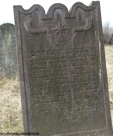 Grabstein des Aron Feist Stein (gest. 1898) mit den Symbolen der "Kohanim".